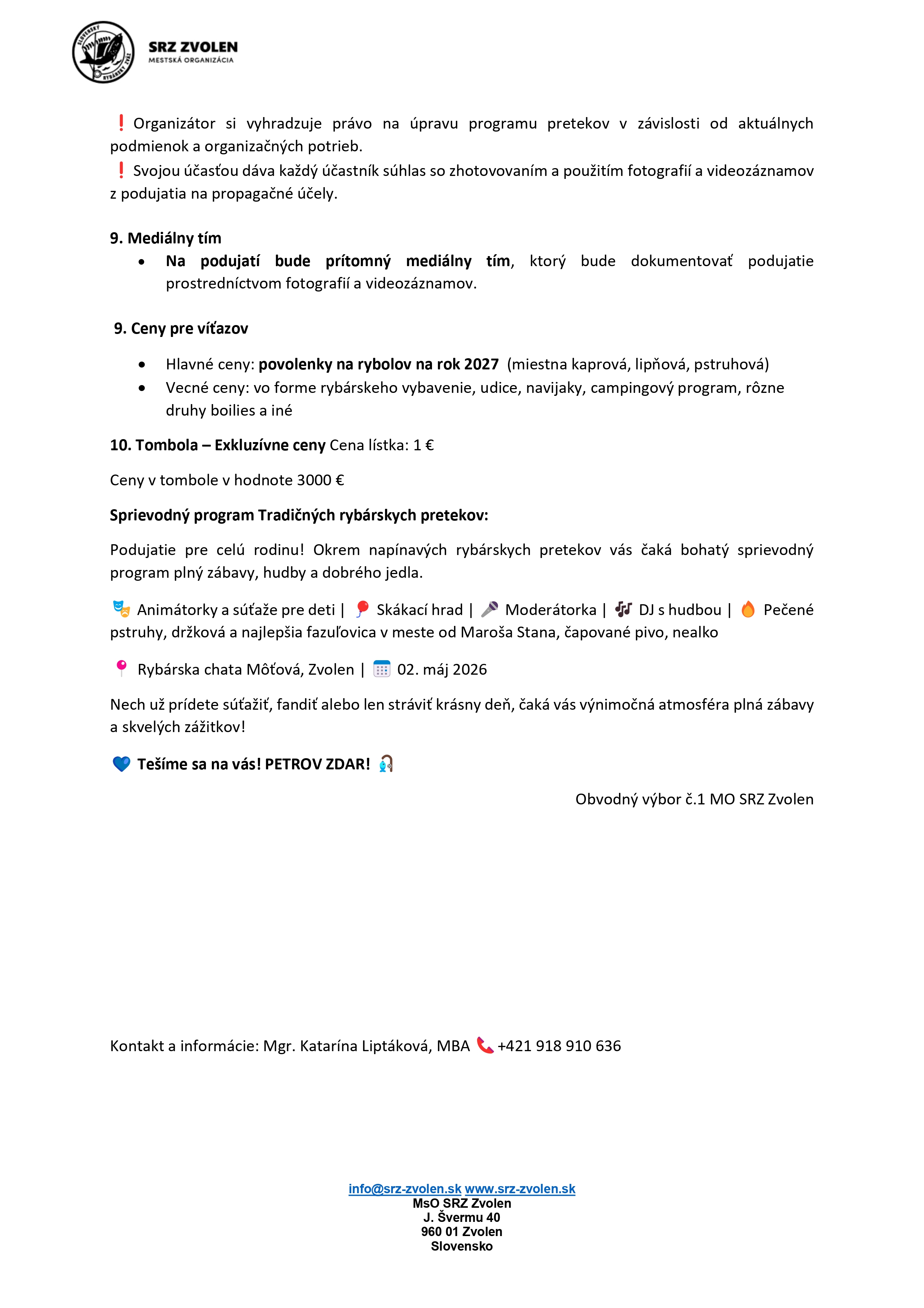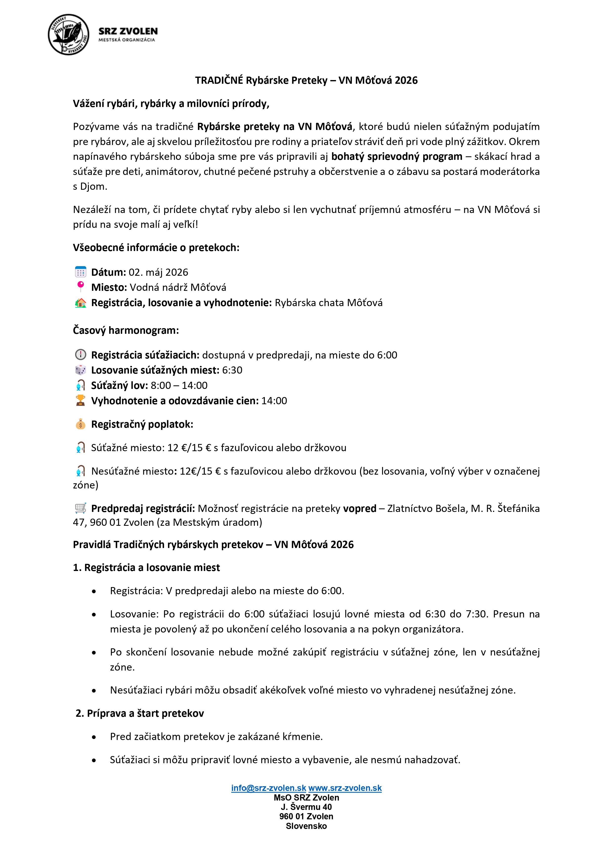 Tradičné rybárske preteky dospelých - VN Môťová r. 2026