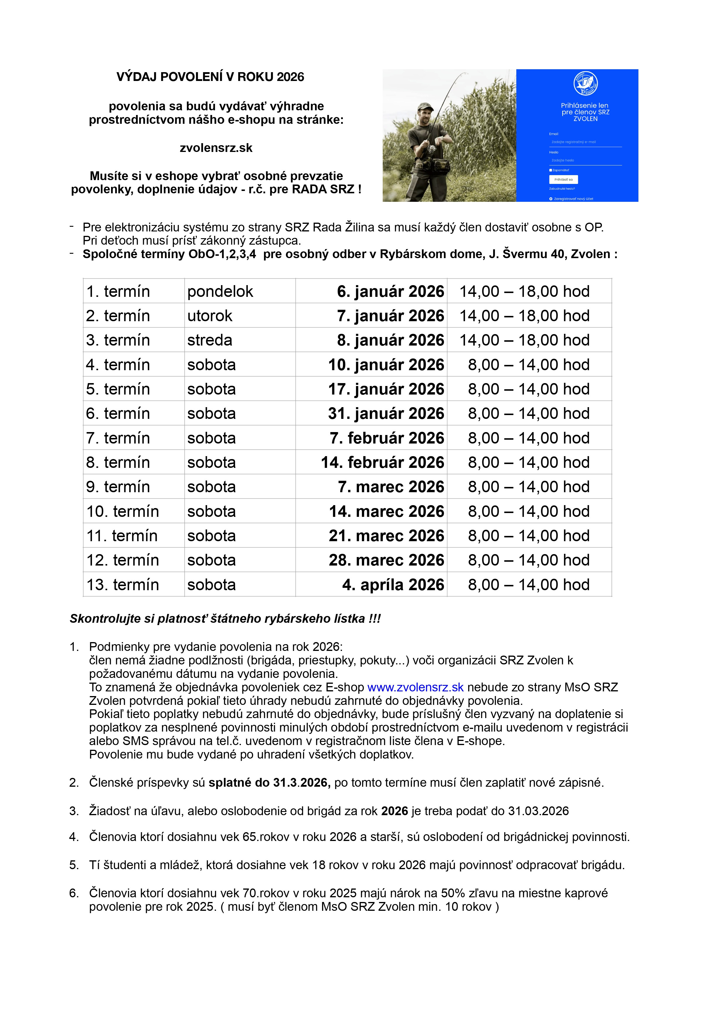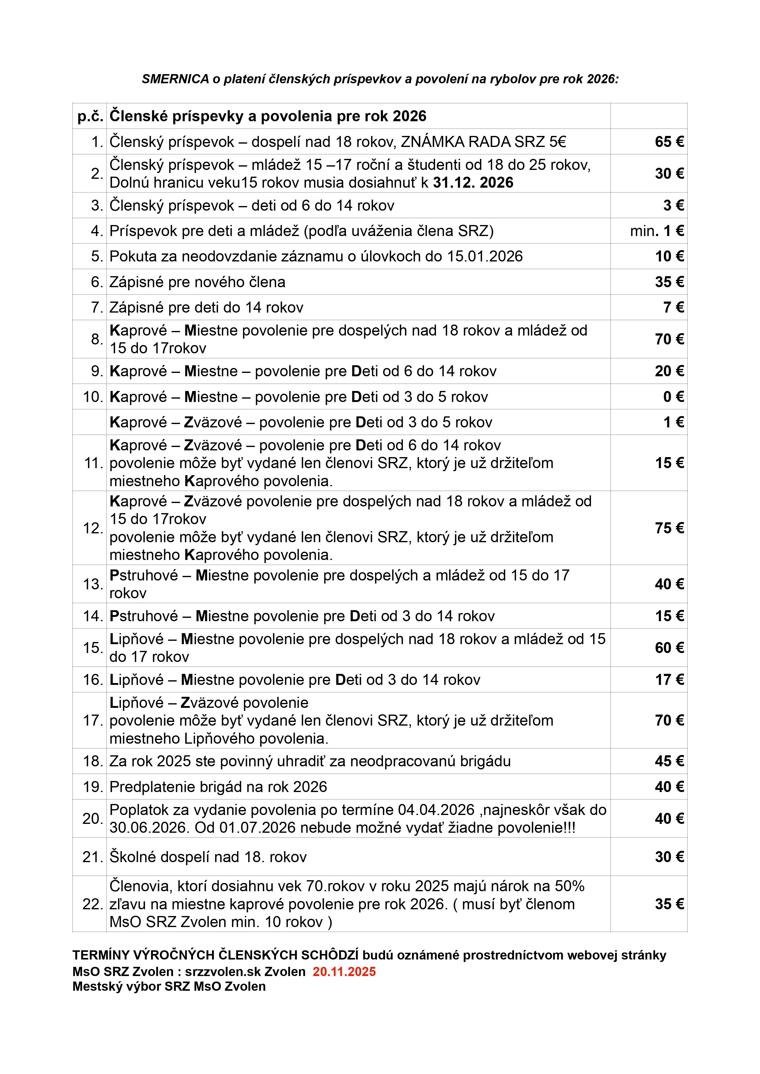 NA STIAHNUTIE: Smernica o platení členských príspevkov a povolení a termíny výdaja povolení na r. 2026